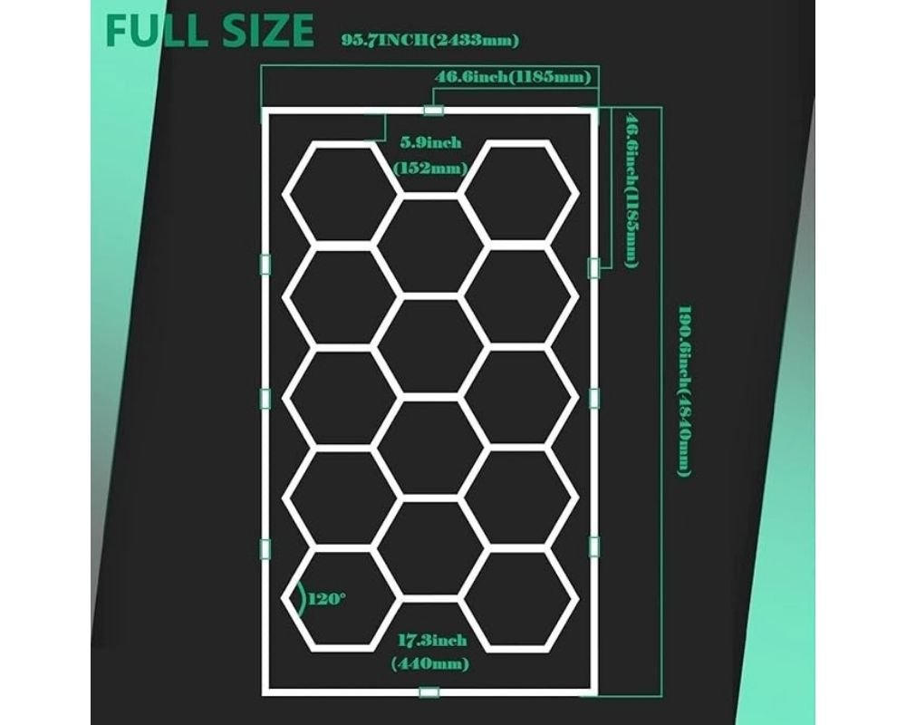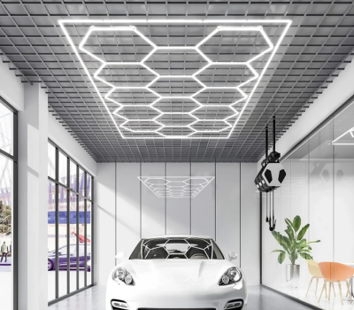 Hexagon LED Garage Light 720W 6500K Rectangle Frame 86400 Lumens, Ideal for Garages, Warehouses, Auto Beauty Shops, Car Detailing Shops, Basements