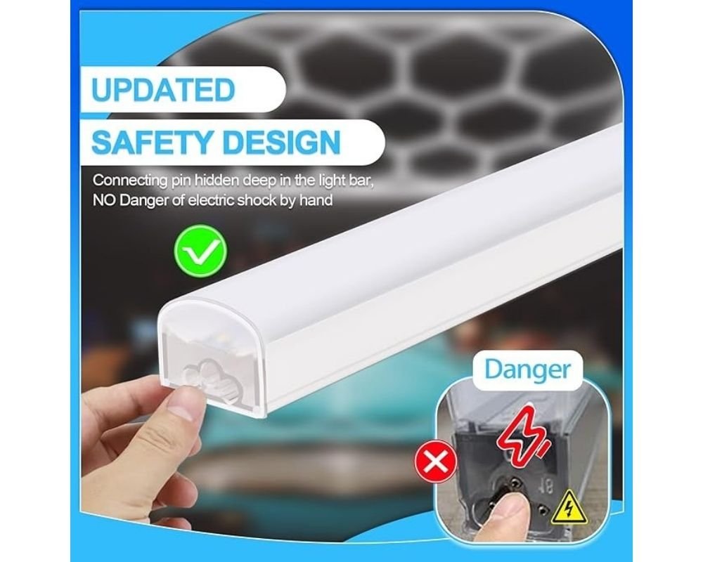 - 【Special Safety Design & Durable】The garage lamp using 3PIN connecting pins, which have been specially built deep inside. Compared with others, By this design, it is impossible to touch these connect pins during installation like others, So NO RISK of electric shock, Really Safety! This led garage light is made of high-quality PC material, which provides higher strength but more lighter, very easy for installation .