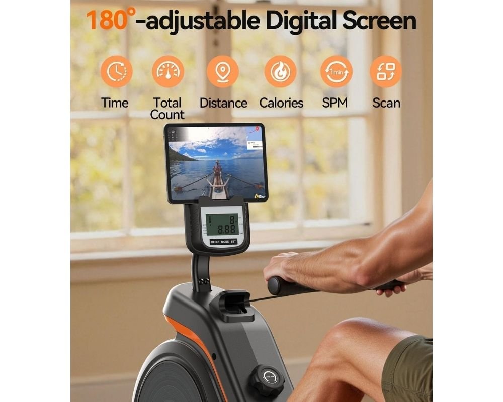 - LARGE MONITOR AND TABLE HOLDER: The LCD monitor clearly displays your rowing datas. You can put the phone on the holder to enjoy the videos or music. Newly Bluetooth supports APP, you can experience different rowing scenarios and the fun of rowing races